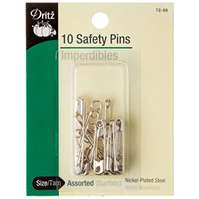 Use for sewing, quilting, jewelry making, craft projects and general household use Great for basting quilts, mending holes and temporary fixes Nickel-plated Steel; Rust resistant Package contains (8) size 1 (1-1/16") and (2) size 2 (1-1/2") Safety Pins