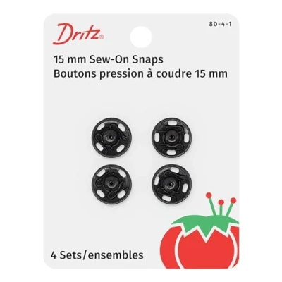 Dritz Sew On Snaps, Black, Size 4