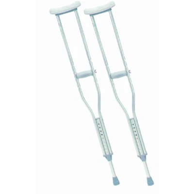 The standard aluminium crutch provides stability and durability Double extruded centre tube provides additional strength to weight bearing area Push-pin adjustment makes it easy to adjust crutch height in 1" increments Non-skid, jumbo size vinyl contoured tips provide excellent traction Easy wing nut adjustments for hand grips