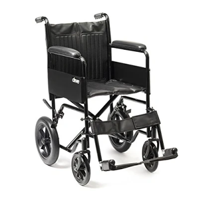 Drive Devilbiss S1 Economy Steel Transit Wheelchair with Solid Rear Wheels, 18 Inch Seat Width