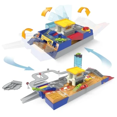 DRIVEN by Battat Auto Shop & Race Track Playset for Kids Collapsible with Tracks Toy Cars 80pc Pretend Play Set Pocket Series Build A City 3 Years +,Multicolor,Medium
