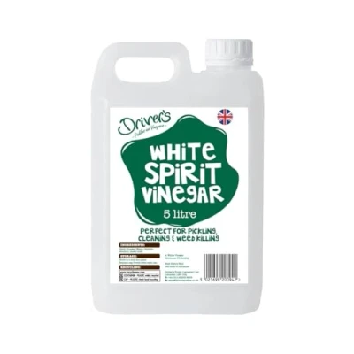 Versatility - Our Vinegar has an extensive range of uses, from Cleaning to Pickling, Weeding to Marinating! Drivers White Spirit Vinegar is Food-Grade, meaning you can be confident in it's usability for Pickling & Cooking Our Vinegar is Free from Additaves & Sulphites, we also use environmentally friendly packaging; 5 Litre Jerry cans product from Recycled Plastic At 5% Acidity, Drivers White Spirit Vinegar is perfect for removing tough-to-clean stains, limescale and other stubborn Dirt It can also be used to clean outside features, such as Patios Drivers Foods is a Family-owned British producer of Pickles & Vinegars since 1906