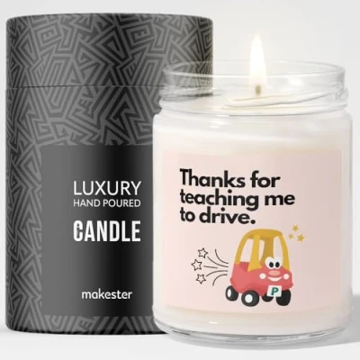 Driving Instructor Gifts Luxury Soy Wax Candle Vanilla, Jasmine, Sugared Almond Makester