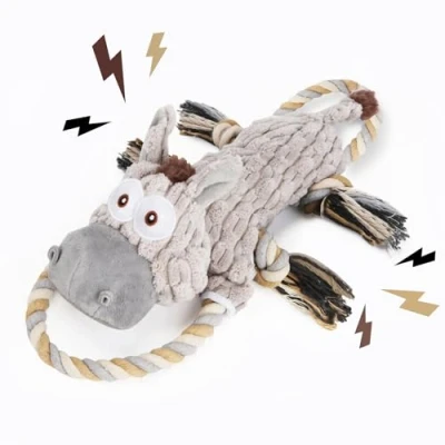 Crinkly Fun: Soft plush toy filled with crinkly paper provides engaging sounds that entice play and mental stimulation for dogs. Tough Construction: Durable seams and materials stand up to roughhousing with dogs of all sizes without tearing or seam separation. Interactive Play: Pull-toy design encourages exercise and engagement as dogs tug on the toy's attached squeaker and crinkly paper. Multiple Sizes: Toys come in small, medium, and large sizes to suit dogs of all breeds and ages for safe indoor play. Satisfaction Guarantee: Backed by the manufacturer's promise of satisfaction, these toys can be replaced if dogs destroy them through heavy chewing in the first month.