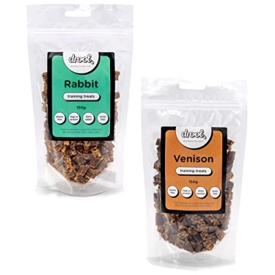 Drool Pet Products 100% Pure Dried Fresh Meat Rabbit & Venison Double Pack Training Treats for Dogs 2 x 150g Air Nibbles Dog Chews Puppies
