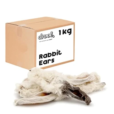 Drool Pet Products 100% Rabbit Ears with Hair for Dogs Single Pack 1 x 1kg Natural Air Dried Ear Dog Treat Chews Low Fat Healthy Hypoallergenic Grain Free Diets