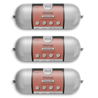 100% NATURAL & HEALTHY : Drool's Pate for Dogs is 100% natural & healthy fresh meat and natural pate for dogs. These pates are a delicious treat and healthy too. GRAIN FREE AND NO ADDITIVES : Our pate roll is grain free with no additives. They are an excellent source of protein for Dogs of all sizes and are ideal for puppies EXCELLENT TRAINING TREATS : The Dog pate food can be sliced or diced and are perfect for training puppies/dogs. DELICIOUS FLAVOUR : amazing flavour from our wide range. Packed full of protein and goodness for your dog. WHAT’S INCLUDED: Each pack contains 3 x 400g of premium pate in horse flavour, ideal for dogs of all breeds and life stages.