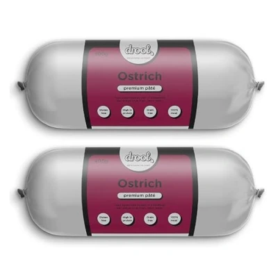 Drool Pet Products Dog Food Pate Twin Pack 2 x 400g Premium Tube Ostrich