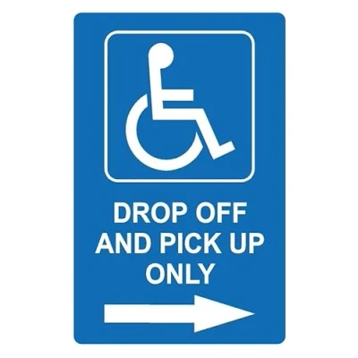 Drop off and pick up only right arrow disabled parking sign 1mm flexible Plastic (400mm x 300mm)