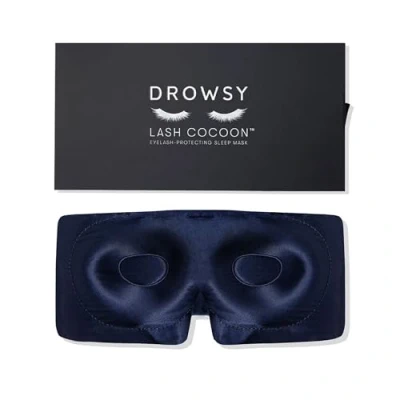DROWSY Eyelash Protecting Silk Sleep Mask for Natural Lashes & Extensions. Deep Eye Cups, Zero Pressure, Total Blackout, Full Wraparound (Midnight Blue)