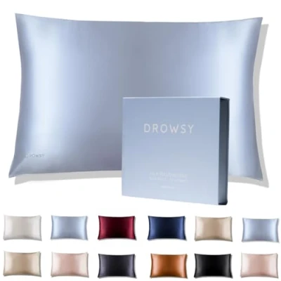 Drowsy Silk Pillowcase 100% Pure Mulberry 22 Momme 6A High Grade Fibers Skin, Hair and Sleep Benefits Envelope Opening Queen/King Size (Blue Belle)