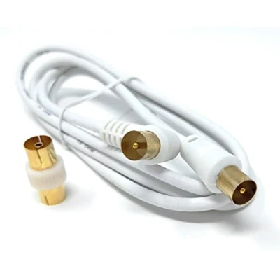 The TV RF Right Angle Male to Male Aerial Antenna Coaxial Cable with Female to Female Coupler Gold Connectors is a high-quality, 75 ohm coaxial cable designed for use in connecting your TV or other audio-visual equipment to an external antenna. This cable is specifically designed to minimize signal loss and interference, ensuring you receive a clear and reliable signal. The cable features a right angle male connector at one end, allowing you to easily connect it to your TV or other equipment in tight spaces. The other end of the cable also features a male connector, allowing you to connect it to your external antenna. The gold connectors provide a superior connection that helps to minimize signal loss and interference, while also ensuring durability and longevity. In addition to the male connectors, the cable comes with a female to female coupler, which allows you to easily connect two cables together for even greater length and flexibility. The coupler also features gold connectors for optimal signal quality. The cable is made from high-quality materials, including a 3C2V coaxial cable construction, which helps to further reduce signal loss and interference. The outer jacket is made from durable and flexible PVC, which protects the inner conductor and ensures a long-lasting connection. Overall, the TV RF Right Angle Male to Male Aerial Antenna Coaxial Cable with Female to Female Coupler Gold Connectors is an excellent choice for anyone looking for a reliable and high-quality coaxial cable for their TV or other audio-visual equipment. Its high-quality construction and gold connectors ensure that you receive a clear and reliable signal, while its durable design guarantees long-lasting performance.