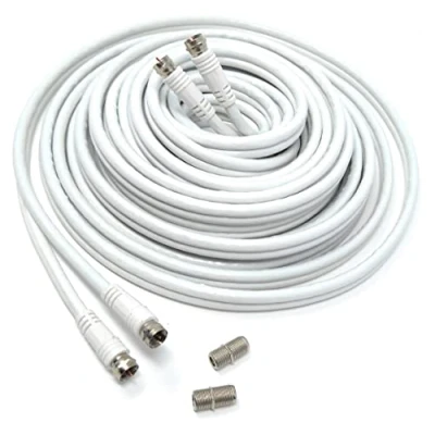 The Twin Shotgun Satellite Moulded F-Type Plug to Socket RG6 Coaxial Extension Cable Lead with F-Type Couplers is a cable designed to extend the reach of your satellite or cable TV signal. It consists of two RG6 coaxial cables bound together, which are then terminated with a molded F-Type plug on one end and an F-Type socket on the other end. F-Type couplers are also included to join multiple cables together if needed. The RG6 coaxial cables are designed to carry high-frequency signals such as those used for satellite or cable TV. The cable has a low signal loss and can maintain a high-quality signal over a long distance. The two coaxial cables are bound together in a shotgun-style configuration, which reduces cable clutter and makes it easier to install. The molded F-Type plug and socket are standardized connectors that are commonly used in the satellite and cable TV industry. The F-Type couplers allow for easy connection and disconnection of multiple cables. Overall, the Twin Shotgun Satellite Moulded F-Type Plug to Socket RG6 Coaxial Extension Cable Lead with F-Type Couplers is a useful cable for extending the reach of your satellite or cable TV signal. By using this cable, you can maintain a high-quality signal over a longer distance without needing to install additional equipment. The F-Type connectors and couplers make installation and connection easy and hassle-free. Twin shotgun digital coaxial cable. This twin shotgun cable is used in every twin satellite installation worldwide. This cable can be used for Sky, Sky +, Sky HD, Freesat, Humax Or any other Twin satellite receivers.