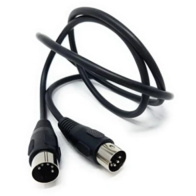 The 5 pin MIDI male to male DIN plug audio cable is an essential cable for connecting music instruments and other audio devices that use MIDI (Musical Instrument Digital Interface) technology. This cable is designed with two 5-pin DIN plugs, one male and one male, making it suitable for connecting MIDI devices that feature MIDI IN and MIDI OUT ports. The cable is typically used to connect music keyboards, synthesizers, drum machines, and other MIDI-enabled instruments to a computer or MIDI controller. The cable is constructed with high-quality materials, including oxygen-free copper (OFC) conductors and a durable PVC jacket. The OFC conductors ensure high-quality signal transmission with minimal interference and noise, while the PVC jacket provides excellent durability and protection against damage. The cable is also shielded to prevent electromagnetic interference, ensuring reliable and accurate data transmission between devices. The 5-pin DIN connectors are also sturdy and designed to provide a secure and stable connection. With this 5 pin MIDI male to male DIN plug audio cable, musicians can easily connect their MIDI-enabled instruments to a computer or MIDI controller and enjoy seamless and high-quality audio performance.