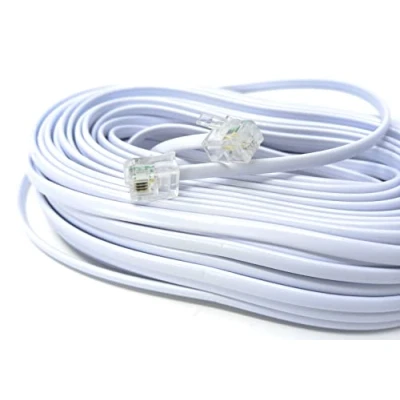 DRUT 20m RJ11 to Telephone Landline Cable ADSL 6P4C Flat Lead High Speed BT Internet Broadband Male Router Modem Phone Extension Wire 65ft White