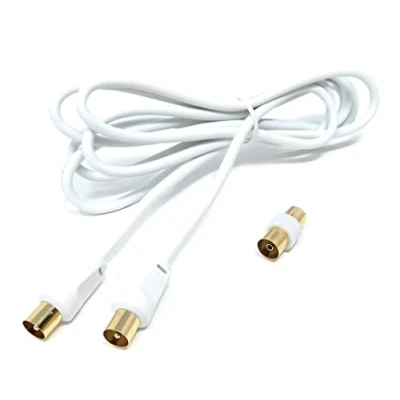 This TV RF Male to Male Aerial Antenna Coaxial Cable is designed to connect your television or other device with an RF input to an external antenna or aerial. The cable features male connectors on both ends, making it easy to plug in and use with compatible devices. With gold connectors and a 75 ohm impedance, this cable is built to deliver high-quality signal transmission with minimal interference or loss of signal strength. The cable is constructed from 3C2V coaxial cable, which provides excellent shielding against electromagnetic interference and other sources of signal degradation. To provide added flexibility and convenience, this cable also comes with a female to female coupler. This allows you to easily connect two cables together, extending the length of your cable run or allowing you to connect to an antenna or aerial in a different location. Whether you're setting up a new television, upgrading your existing equipment, or just need a high-quality RF cable for your antenna or aerial, this TV RF Male to Male Aerial Antenna Coaxial Cable is an excellent choice. Available in Black or White
