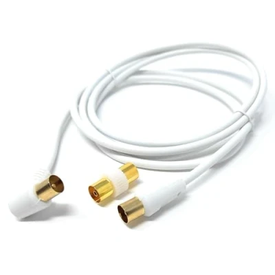 DRUT 2m TV RF Right Angle Male to Aerial Antenna Coaxial Cable With Female Coupler Gold Connectors 75 ohm, 3C2V 6.5ft White