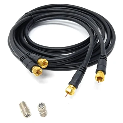 The Twin Shotgun Satellite Moulded F-Type Plug to Socket RG6 Coaxial Extension Cable Lead with F-Type Couplers is a cable designed to extend the reach of your satellite or cable TV signal. It consists of two RG6 coaxial cables bound together, which are then terminated with a molded F-Type plug on one end and an F-Type socket on the other end. F-Type couplers are also included to join multiple cables together if needed. The RG6 coaxial cables are designed to carry high-frequency signals such as those used for satellite or cable TV. The cable has a low signal loss and can maintain a high-quality signal over a long distance. The two coaxial cables are bound together in a shotgun-style configuration, which reduces cable clutter and makes it easier to install. The molded F-Type plug and socket are standardized connectors that are commonly used in the satellite and cable TV industry. The F-Type couplers allow for easy connection and disconnection of multiple cables. Overall, the Twin Shotgun Satellite Moulded F-Type Plug to Socket RG6 Coaxial Extension Cable Lead with F-Type Couplers is a useful cable for extending the reach of your satellite or cable TV signal. By using this cable, you can maintain a high-quality signal over a longer distance without needing to install additional equipment. The F-Type connectors and couplers make installation and connection easy and hassle-free. Twin shotgun digital coaxial cable. This twin shotgun cable is used in every twin satellite installation worldwide. This cable can be used for Sky, Sky +, Sky HD, Freesat, Humax Or any other Twin satellite receivers.