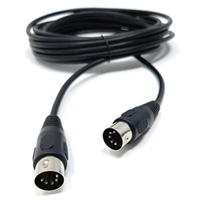 The 5 pin MIDI male to male DIN plug audio cable is an essential cable for connecting music instruments and other audio devices that use MIDI (Musical Instrument Digital Interface) technology. This cable is designed with two 5-pin DIN plugs, one male and one male, making it suitable for connecting MIDI devices that feature MIDI IN and MIDI OUT ports. The cable is typically used to connect music keyboards, synthesizers, drum machines, and other MIDI-enabled instruments to a computer or MIDI controller. The cable is constructed with high-quality materials, including oxygen-free copper (OFC) conductors and a durable PVC jacket. The OFC conductors ensure high-quality signal transmission with minimal interference and noise, while the PVC jacket provides excellent durability and protection against damage. The cable is also shielded to prevent electromagnetic interference, ensuring reliable and accurate data transmission between devices. The 5-pin DIN connectors are also sturdy and designed to provide a secure and stable connection. With this 5 pin MIDI male to male DIN plug audio cable, musicians can easily connect their MIDI-enabled instruments to a computer or MIDI controller and enjoy seamless and high-quality audio performance.