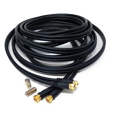 The Twin Shotgun Satellite Moulded F-Type Plug to Socket RG6 Coaxial Extension Cable Lead with F-Type Couplers is a cable designed to extend the reach of your satellite or cable TV signal. It consists of two RG6 coaxial cables bound together, which are then terminated with a molded F-Type plug on one end and an F-Type socket on the other end. F-Type couplers are also included to join multiple cables together if needed. The RG6 coaxial cables are designed to carry high-frequency signals such as those used for satellite or cable TV. The cable has a low signal loss and can maintain a high-quality signal over a long distance. The two coaxial cables are bound together in a shotgun-style configuration, which reduces cable clutter and makes it easier to install. The molded F-Type plug and socket are standardized connectors that are commonly used in the satellite and cable TV industry. The F-Type couplers allow for easy connection and disconnection of multiple cables. Overall, the Twin Shotgun Satellite Moulded F-Type Plug to Socket RG6 Coaxial Extension Cable Lead with F-Type Couplers is a useful cable for extending the reach of your satellite or cable TV signal. By using this cable, you can maintain a high-quality signal over a longer distance without needing to install additional equipment. The F-Type connectors and couplers make installation and connection easy and hassle-free. Twin shotgun digital coaxial cable. This twin shotgun cable is used in every twin satellite installation worldwide. This cable can be used for Sky, Sky +, Sky HD, Freesat, Humax Or any other Twin satellite receivers.