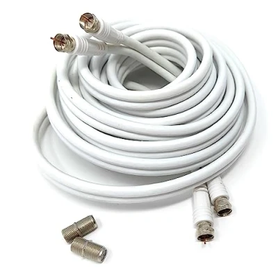 The Twin Shotgun Satellite Moulded F-Type Plug to Socket RG6 Coaxial Extension Cable Lead with F-Type Couplers is a cable designed to extend the reach of your satellite or cable TV signal. It consists of two RG6 coaxial cables bound together, which are then terminated with a molded F-Type plug on one end and an F-Type socket on the other end. F-Type couplers are also included to join multiple cables together if needed. The RG6 coaxial cables are designed to carry high-frequency signals such as those used for satellite or cable TV. The cable has a low signal loss and can maintain a high-quality signal over a long distance. The two coaxial cables are bound together in a shotgun-style configuration, which reduces cable clutter and makes it easier to install. The molded F-Type plug and socket are standardized connectors that are commonly used in the satellite and cable TV industry. The F-Type couplers allow for easy connection and disconnection of multiple cables. Overall, the Twin Shotgun Satellite Moulded F-Type Plug to Socket RG6 Coaxial Extension Cable Lead with F-Type Couplers is a useful cable for extending the reach of your satellite or cable TV signal. By using this cable, you can maintain a high-quality signal over a longer distance without needing to install additional equipment. The F-Type connectors and couplers make installation and connection easy and hassle-free. Twin shotgun digital coaxial cable. This twin shotgun cable is used in every twin satellite installation worldwide. This cable can be used for Sky, Sky +, Sky HD, Freesat, Humax Or any other Twin satellite receivers.