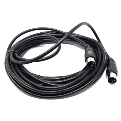The 5 pin MIDI male to male DIN plug audio cable is an essential cable for connecting music instruments and other audio devices that use MIDI (Musical Instrument Digital Interface) technology. This cable is designed with two 5-pin DIN plugs, one male and one male, making it suitable for connecting MIDI devices that feature MIDI IN and MIDI OUT ports. The cable is typically used to connect music keyboards, synthesizers, drum machines, and other MIDI-enabled instruments to a computer or MIDI controller. The cable is constructed with high-quality materials, including oxygen-free copper (OFC) conductors and a durable PVC jacket. The OFC conductors ensure high-quality signal transmission with minimal interference and noise, while the PVC jacket provides excellent durability and protection against damage. The cable is also shielded to prevent electromagnetic interference, ensuring reliable and accurate data transmission between devices. The 5-pin DIN connectors are also sturdy and designed to provide a secure and stable connection. With this 5 pin MIDI male to male DIN plug audio cable, musicians can easily connect their MIDI-enabled instruments to a computer or MIDI controller and enjoy seamless and high-quality audio performance.