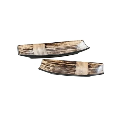 DRW Set of 2 Brown Ceramic Table Centres 13.5x4x30 and 17x4x39cm, Multicoloured, estandar