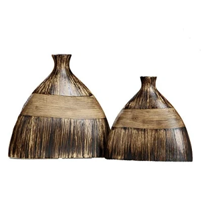DRW Set of 2 table vases Ceramica Brown 22x7x20.5 and 27x7.5x25 cm