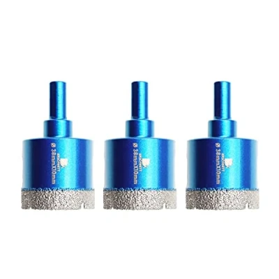 ✔Size --3pcs/pack,38mm, diamond height 10mm, total length 65mm,Triangle shank diamond core drill bit ✔Wide Applications --Diamond core bits are worked great for dry drilling holes through hard porcelain tile, ceramics,bathroom tile,granite & marble, masonry, concrete, glass, hard plastic with ease. Using water could prolong the lifetime ✔Super Quality Raw Material --Using vacuum brazed technology ,which increases resistance to temperature and friction,to make the diamond particles better attach to the core steel,imporve the performance and lifetime.Constructed with high grade diamond grit for effortless cutting and improved durability in tough applications.High-quality core steel body helps to be more efficient and durable, not easy to deform ✔High Performance --Special design of spiral groove at the top of bit helps for chip removal,Wax inside the drill bit helpful for Cooling and Lubrication ✔Machine --Suitable for any electric drill,hand drill,Bench Drill, When use Angle Grinder,please install angle grinder drill chuck