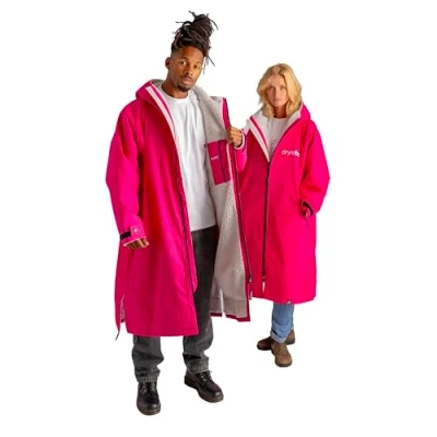Dryrobe Advance The Original Long Sleeve Waterproof Changing Robe Oversized Coat with Fleece Lining for Beach, Cold Water Wild Swimming, Surfing Large Pink/Light Grey