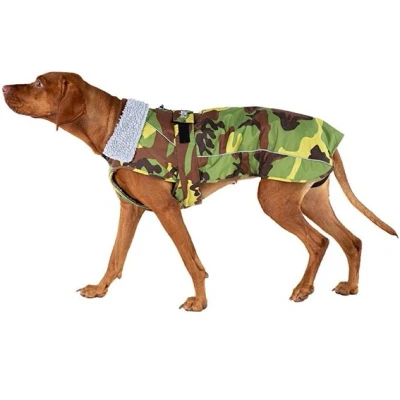 dryrobe® dog is one tough bit of kit. It's designed to stand the wear and tear of even the most active dog.Our unique combination of waterproof and wind resistant outer shell with an ultra-warm synthetic lambswool inner, allows you both to venture out, whatever the weather.dryrobe® dog is available in a range of sizes.Key Features:A completely waterproof and windproof outer shell fabricSuper warm synthetic lambswool lining (51% Acrylic, 49% Recycled Polyester)Reflective 3M Safety PipingFleece-lined, high collar for additional warmthAdjustable velcro body strapEasy slide-on fitConvenient harness access via YKK ZipElasticated leg strapsdryrobe® dog is designed for use out of the water. We do not recommend or encourage you to use the dryrobe® dog while in the water. Be aware that using dryrobe® dog in water may present a serious risk of drowning, even for the strongest doggy swimmers. Have fun, stay warm and play safe.Sizing:The measurements stated in the table are the dimensions of the dryrobe® dog. Measure your dog using the steps below and refer to the chart to determine which size will give the best fit for your dog.Length (A) : S (38cm), M (45cm) , L (55cm), XL (66cm)Adjustable Strap (B) : S (52-58cm), M (62-66cm) , L (69-74cm), XL (82-88cm)To measure your dog:Measure the length of your dog's back from the base of the neck to the base of the tail (A)Measure around the widest/deepest part of the chest - usually right behind the front leg. Make sure the strap length (B) is sufficient.The dryrobe® dog slides over the dog's head and features an expandable elasticated gusset panel and an adjustable chest strap.