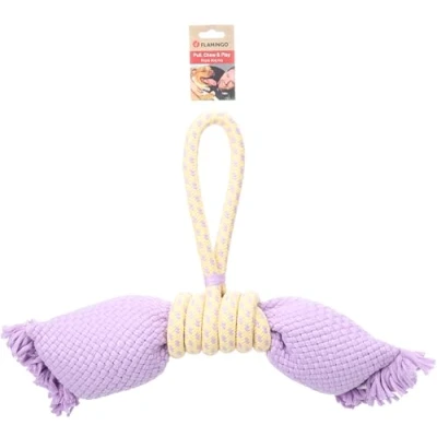 DT JOANIE PULL ROPE WITH TPR BALL AND KNOTS TWIST PURPLE/YELLOW 36x13,5x8CM