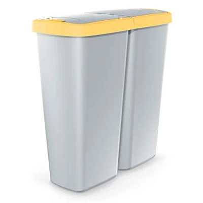 AmazonKEDEN 2-access bin. It has a compartment with 2 separate lids. It is an ideal solution for office spaces. With it you can recycle in an orderly way. Made in Plastic-Color White and Yellow