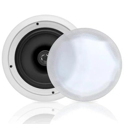 50Hz-20kHz Frequency Response: Pyle 20.32 cm speaker system with a directable 2.54 cm high-temperature voice coil for clear, powerful sound and impressive 4-8 ohm impedance rating Versatile 2-Way Mounting Options: Install easily in-wall or in-ceiling with convenient terminals for quick, hassle-free wiring. Perfect for custom home installations Flush Mount Design: Sleek, space-saving flush mount speakers designed for easy, discreet installation in walls or ceilings. Ideal for home or office spaces 250 Watts Peak Power: High-performance speakers designed for clear sound reproduction and extended durability. Handles 250 watts for powerful, distortion-free audio Elegant White Finish: Contemporary white design blends seamlessly into your home’s décor. Secure installation with a bracket supporting 4.7 kg (10.42 lbs)