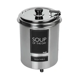 360(H) x 255(Ø)mm. Stainless Steel. Silver. Ideal for holding batches of soup, chilli, curry and mulled wine. Hinged and removable lid for easy filling and cleaning. Comes with a set of magnetic display cards.
