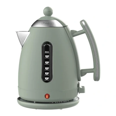 Harts of SturThis Dualit Polished Chrome Jug Kettle Sage has a capacity of 1.5 litres providing approximately 6 cups of boiling water.There is a large BPA-free viewing window on either side with measurements shown in cups, which makes it really easy to fill to the right level - saving both boiling time and energy. The non-drip spout prevents mess or potential hazards when pouring.The Dualit Polished Chrome Jug Kettle Sage sits on a 360 degree axis base which also has a useful cord storage.The kettle has a rapid boil feature with a powerful 3KW concealed element and boil-dry safety feature.The limescale filter is removable and washable and the hinged easy-fill lid has a large, heatproof knob and finger guard to keep your hands clear from the body of the kettle once boiled.Dimensions: 22.2cm Wide x 16.6cm Depth x 26cm Height.Weight: 1.23kg.