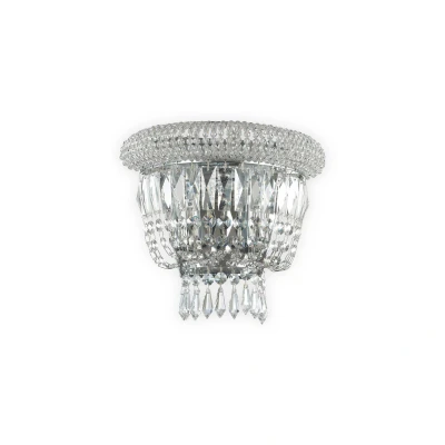 Magnificent in its elegance, this fitting will fill the area with sparkling light. The fitting is available in two finishes, allowing you to choose the best one for the setting. The fitting is embellished with transparent cut crystals, in a variety of different shapes including spheres, octagons and prisms. The range offers a choice of fittings which add the possibility of creating a matching lighting theme throughout the room. Class one.