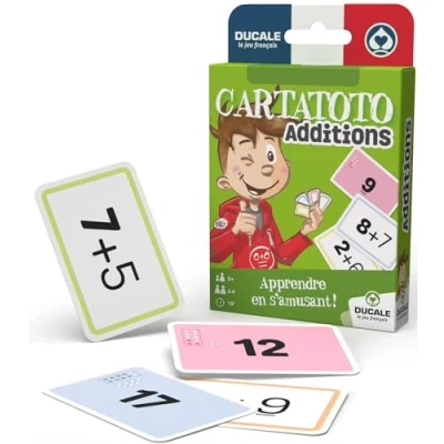 Learn and check the additions by having fun with the Cartatoto educational game. Multiple game rules and difficulty levels for easy learning: battales, memory game... Double-sided printing on the back - for smooth operation and optimal results Gold medal in the competition Lépine (founded by Fabienne Math). From 5 years, from 2 to 4 players., Manufacturer: Cartamundi France