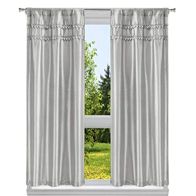 Duck River Textile Diamond Trim Faux Silk Curtain Set, Silver, 38x84