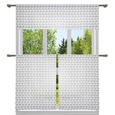 Bring a fresh, fashionable and elegant look to any room with this small kitchen window curtain featuring a fresh stunning Geometric design. They will provide you the necessary privacy and allow just the right amount of light into any room. Each curtain made of jacquard fabric. Perfect for a kitchen, laundry room or guest bathroom. Included: (1) Valance & (2) Tiers 100% Cotton Bring elegance to your home with these fashionable Window sheer tiers that will add a touch of elegance at the same time being practical. Provides privacy and filters light. EASY MAINTENANCE: The curtains offer great durability. Machine washable in cold water. Tumble dry low. Quick iron or steam clean at low temperature settings. Feel free to contact us for any product problem, we will certainly respond within 12 hours.