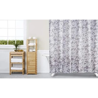 Quickly create a fresh new look with this Duck River Textile Floral fabric shower curtain Made of Polyester fabric, the high-quality curtain hangs gracefully from top to bottom, while its stylish pattern invokes a feeling of calm and coordinates effortlessly with surrounding decor. Transform any bath into an elegant spa-like oasis with the fabric shower curtain. Polyester The rich Grey pieced with a Floral manipulation makes you feel like you're in the spa while the 3M water repellent treatment keeps your curtain looking newer, longer Waterproof: Extremely durable fabric, it prevents water splashing outside the bath area floor. On the other hand, our smooth texture curtain will last long for using. Machine Washable & Quick Dry: After taking shower, the shower curtain could be washed by washing machine for measurement, it is made by quick