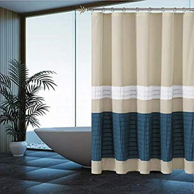 Quickly create a fresh new look with this Duck River Textile Pleated Stripe fabric shower curtain Made of Polyester fabric, the high-quality curtain hangs gracefully from top to bottom, while its stylish pattern invokes a feeling of calm and coordinates effortlessly with surrounding decor. Transform any bath into an elegant spa-like oasis with the fabric shower curtain. Polyester The rich Beige-Slate Blue-White pieced with a Pleated Stripe manipulation makes you feel like you're in the spa while the 3M water repellent treatment keeps your curtain looking newer, longer Waterproof: Extremely durable fabric, it prevents water splashing outside the bath area floor. On the other hand, our smooth texture curtain will last long for using. Machine Washable & Quick Dry: After taking shower, the shower curtain could be washed by washing machine for measurement, it is made by quick
