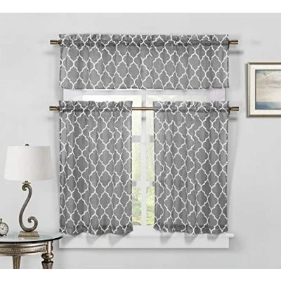 Refresh your kitchen windows with this kitchen curtain set What's Included: (1) Valance & (2) Tiers Fabric Content: Polyester Bring elegance to your home with these fashionable Window tiers that will add a touch of elegance at the same time being practical. Provides privacy and filters light. Care Instruction: Machine Washable For Easy Care