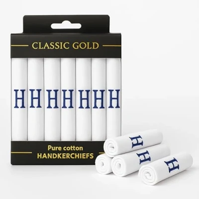 Dudu n girlie 7 piece pure cotton initial monogrammed men's handkerchiefs hanky gift box set Size: 16 inches x 16 inches/ 40 cm x 40 cm 100% pure cotton, excellent quality Care guide: machine washable, tumble dry