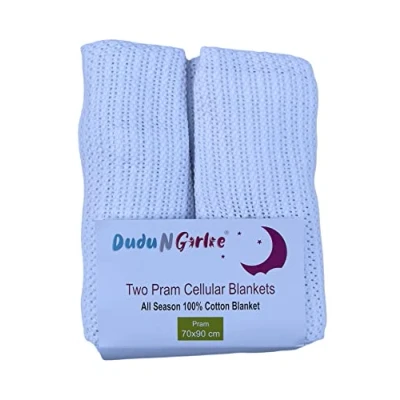 DUDU N GIRLIE Baby Blanket Twin Pack 100% Pure Natural Cotton Extra Soft Cellular Blankets Pram/Travel/Moses Basket 70x90cm White.