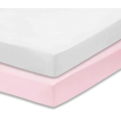 Dudu N Girlie Cot Bed Cotton Fitted sheets 140 x 70 Jersey Soft Besheet Hypoallergenic Fully Elasticated Skirt Breathable (Pack of 2, White & Pink)