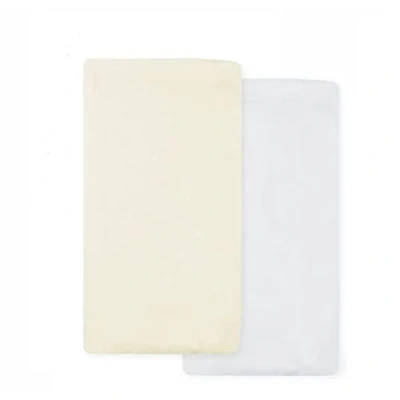 Dudu N Girlie Cotton Travel Cot Sheets Fitted Sheet 95x65 Jersey Soft Bedsheet Hypoallergenic Elasticated Breathable (Pack of 2, White & Cream)