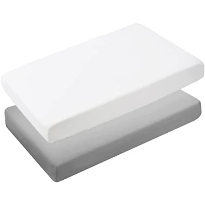 Crib fitted sheets sized 40 × 90 cm, made from 100% cotton fabric. Manufactured in OEKO-TEX certified production facilities. Cotton crib fitted sheets with a stretch-fit elasticated design to support fitting on the mattress. Designed for use with standard crib mattresses. Cotton fitted pram sheets designed to fit pram mattresses. Made from 100% cotton fabric for regular use. Cradle fitted sheets made from cotton jersey fabric. Designed for use with cradle and cot mattresses. VERSATILE COLORS AND SIZING – We offer our fitted sheets in Moses Basket, Crib, Mini Cot, Space Saver Cot, Travel Cot, Next to Me Crib, Single Bed, Double Bed, King Size and Super king well as lavish bedroom colors such as White, Grey, Pink, Blue, Cream, Yellow, Lilac, Black and Navy