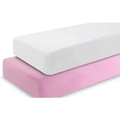 Dudu N Girlie Fitted Sheet Travel Cot Mattress Sheets 95 x 65 2 Pack Hypoallergenic Baby Bedding Elasticated Breathable Easy Care (Pack of 2, White & Pink)