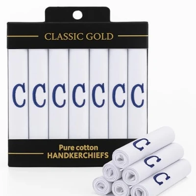 Dudu n girlie 7 piece pure cotton initial monogrammed men's handkerchiefs hanky gift box set Size: 16 inches x 16 inches/ 40 cm x 40 cm 100% pure cotton, excellent quality Care guide: machine washable, tumble dry